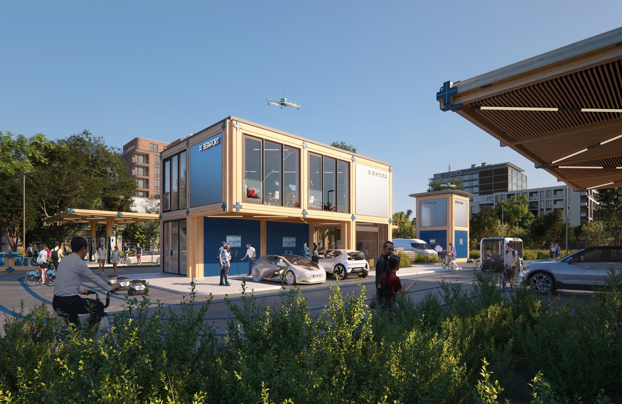 BetaPort offers a modular building system, built into a whole ecosystem, designed around the reversible building blocks. The BetaPort system is built upon highly flexible interior layouts, based on modular building blocks. The design can react to changes, like varying capacities or alternating functions.