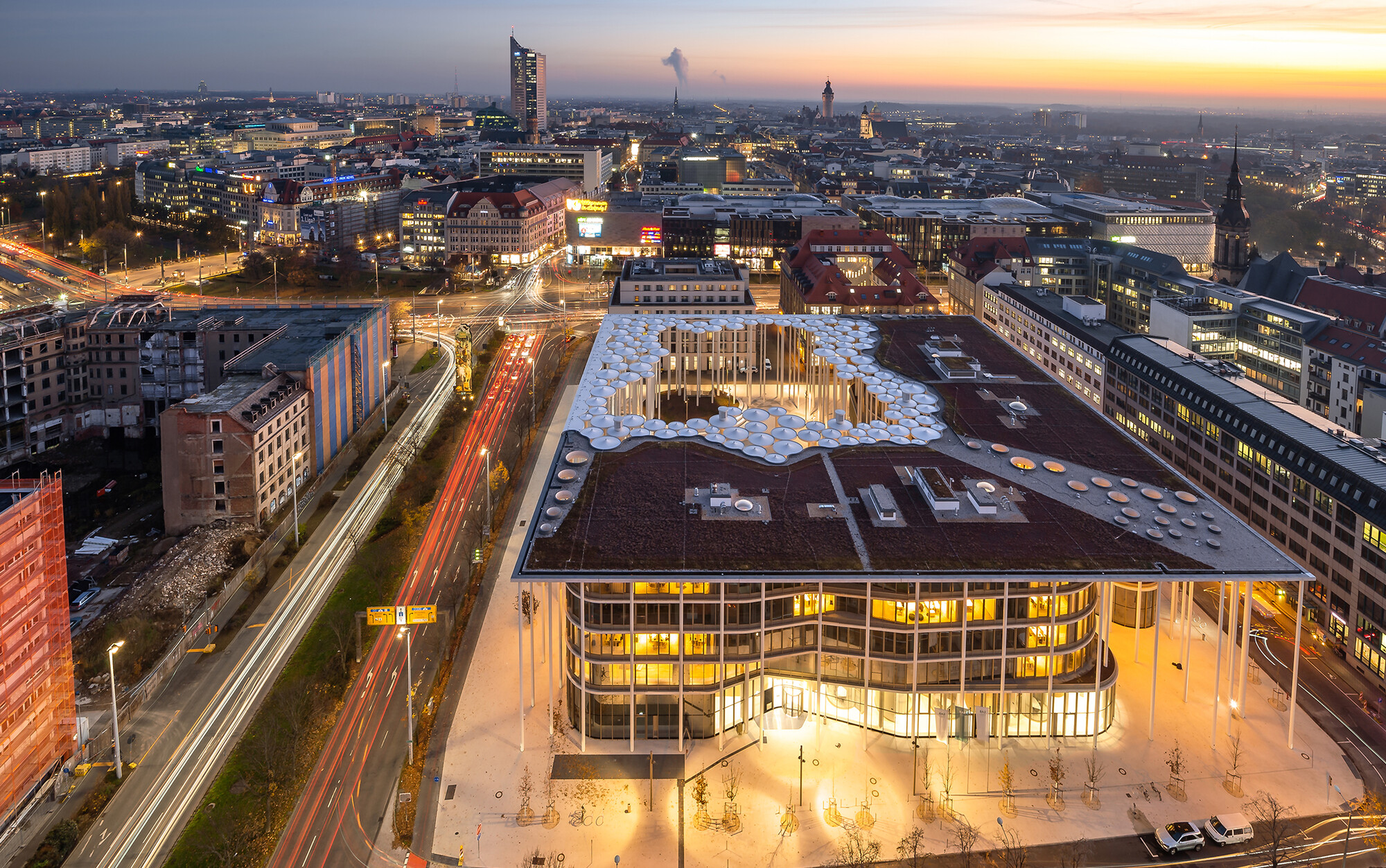 A total of 132 interconnected individual canopies were planned and build for the courtyard roofing of the new building of the Sächsische Aufbaubank - Förderbank SAB.