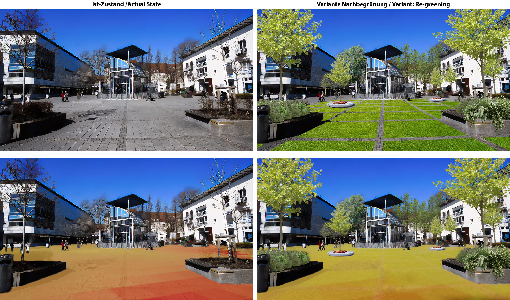 The high-resolution, microscale urban climate simulation using the PALM-4U software provides the opportunity to precisely analyze urban environments and optimize future-oriented decision-making processes. Various planning scenarios can be thoroughly examined, promoting the sustainable design of urban spaces. Through PALM-4U, users gain detailed insights into the temperature distribution in the outdoor areas of urban areas and the identification of urban heat islands. The software allows for a comprehensive analysis of the cold air budget and urban air pathways, the simulation of wind patterns to enhance wind comfort, and the early detection of storm-related hazards. Evidence-based planning of adaptation measures, including green spaces, fresh air corridors, and shading, contributes to reducing heat stress and improving the urban climate.