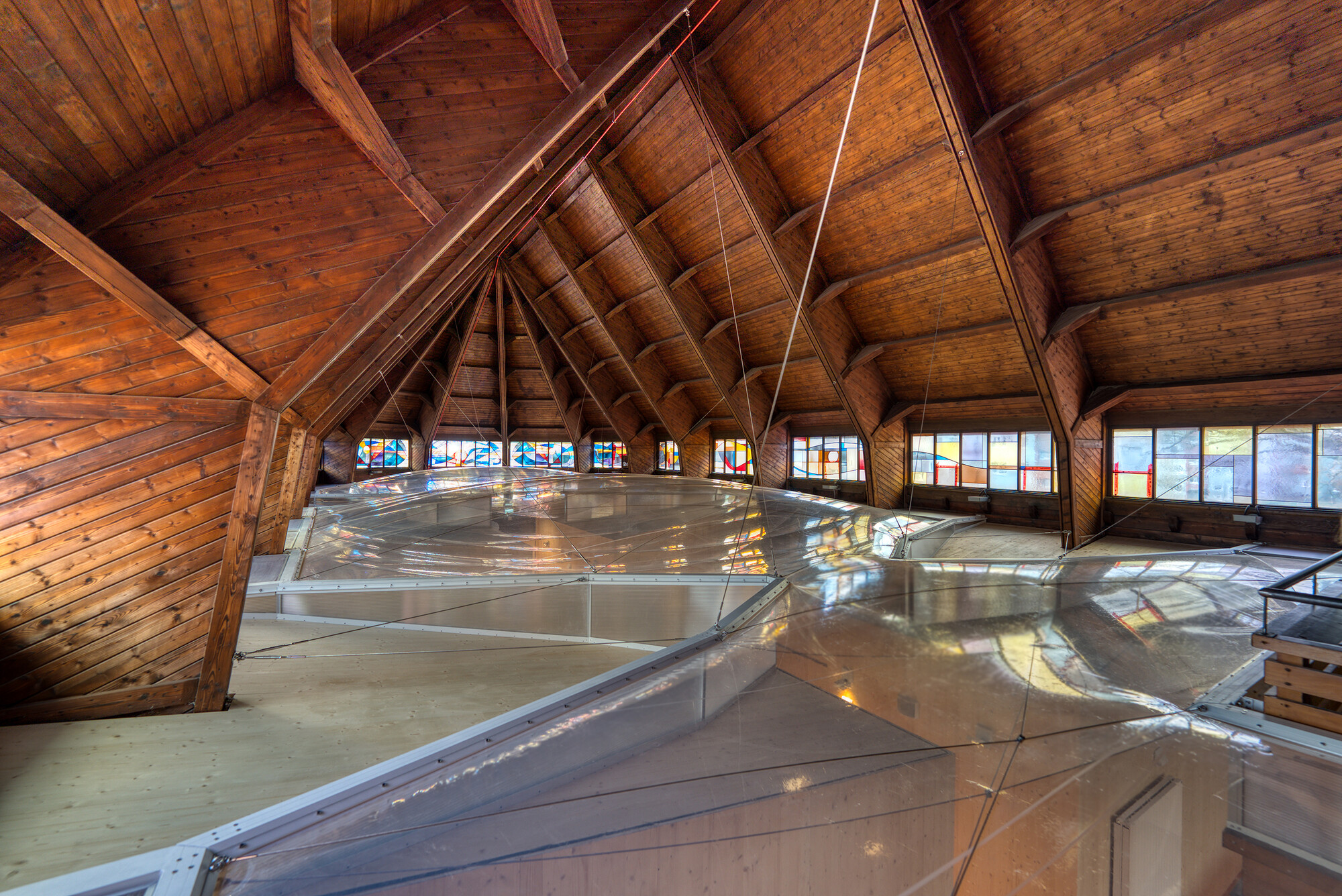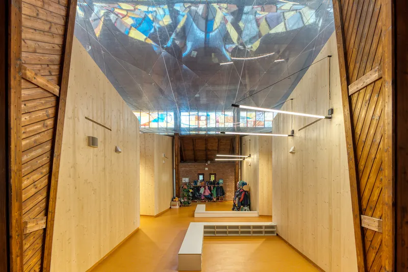 The redesign of the Johanneskirche in Leverkusen is focused on the careful handling of the historical building. To convert the church into a modern daycare center while preserving its wonderful sense of space, an innovative solution was developed: a large-scale ETFE cushion serving as a transparent thermal barrier.
