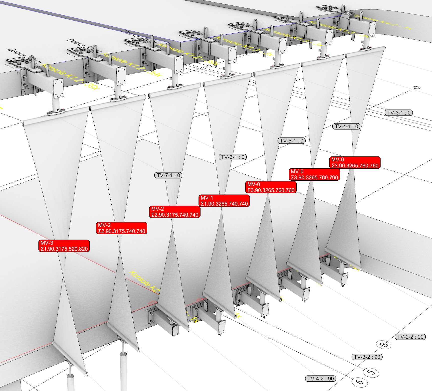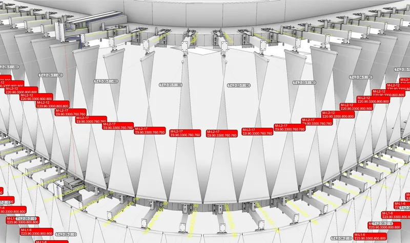 Development and design of a membrane façade made up out of 293 individual lamellas.