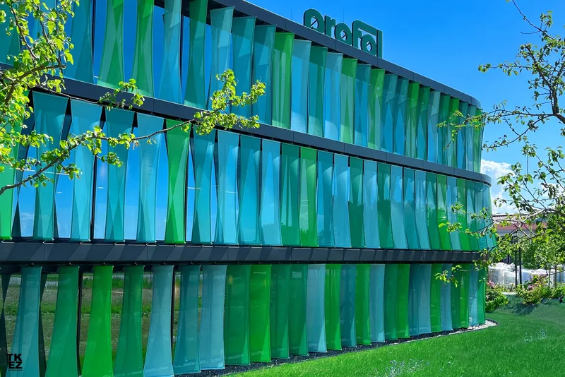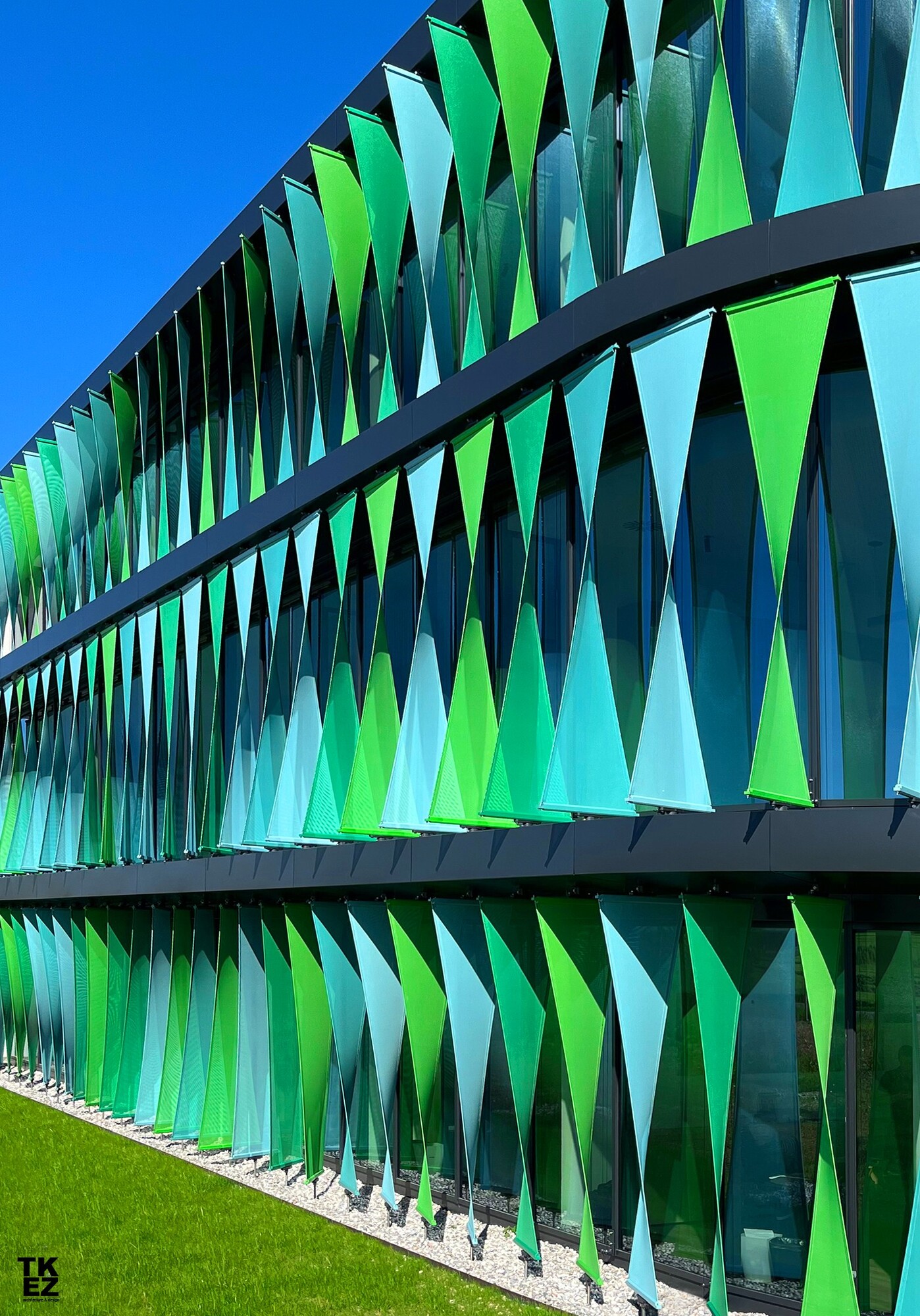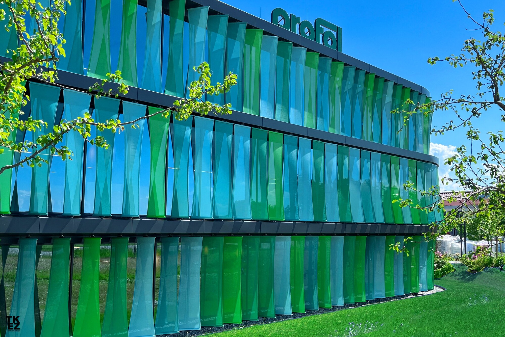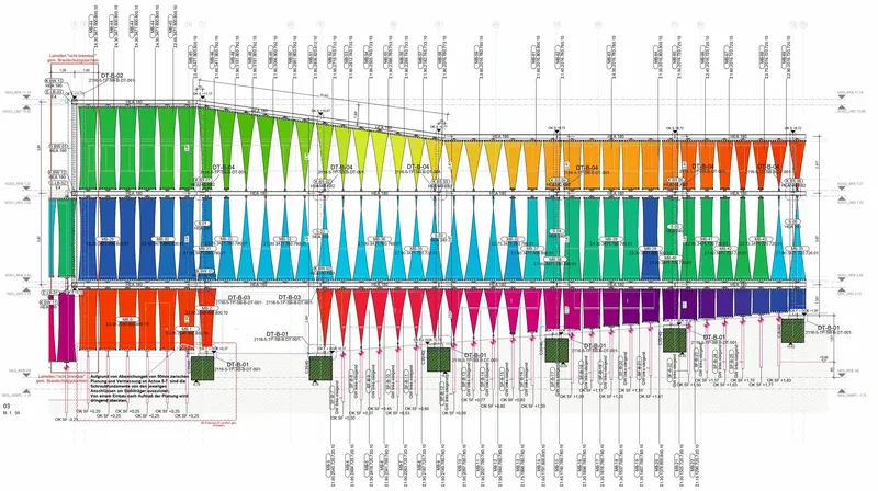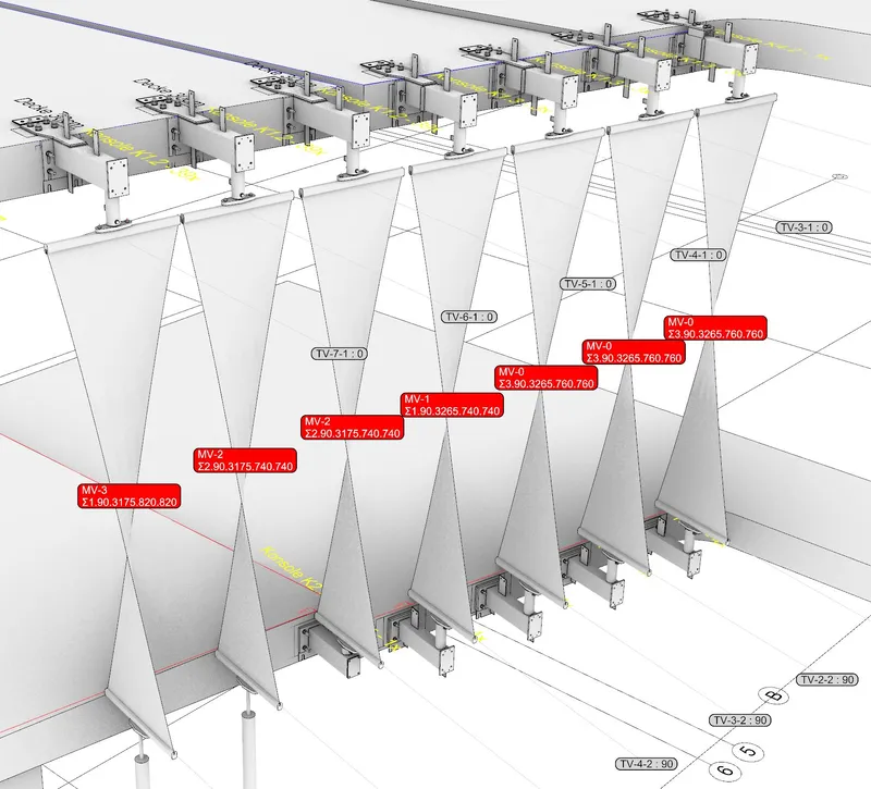 To achieve high design standards for this project, a special aluminum profile was developed, along with reduced details. Coordination was necessary for the interface planning of the ventilated curtain wall façade, mullion-transom façades, sheet metal cladding, and membrane sails. Parametric planning was used to economically cut the sails to size.The high design standards were achieved by developing a special aluminium profile in combination with reduced details. The interface planning of the ventilated curtain wall façade, mullion-transom façades, sheet metal cladding and membrane sails had to be coordinated in terms of planning. The economical cut-to-size planning of the sails was handled parametrically.