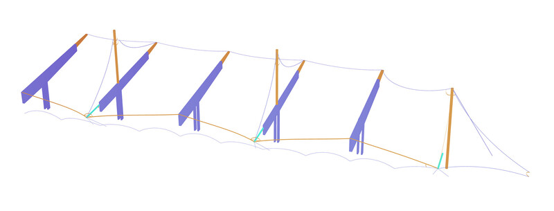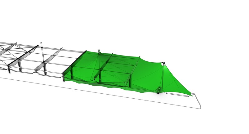 Current load assumptions were determined on the basis of a wind tunnel test and a digital model of the existing structure was created, which was compared with the original structural analysis. In order to avoid introducing higher forces into the substructure, the original membrane shape was adapted in the area of the high points and guided by newly inserted ridge cables. All of the membrane's edge cables were replaced and the reused steel poles, gutters and fittings were re-galvanized. The broken tips of the glulam beams were cut back and replaced with rigidly connected steel tips.