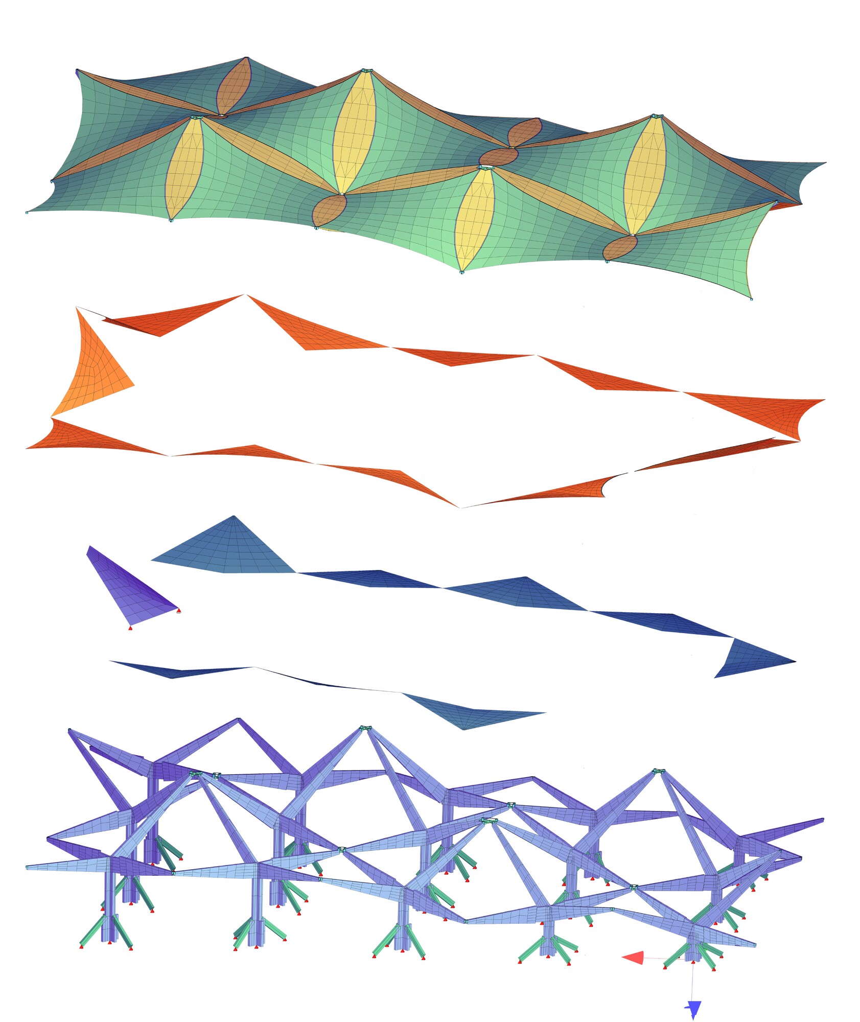 Structural design, formfinding, membrane installation