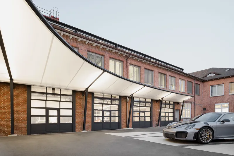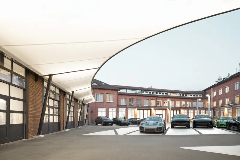 A canopy was planned for the inner courtyard of Porsche Plant 1 in Zuffenhausen in the area of the wash-box and the workshop.