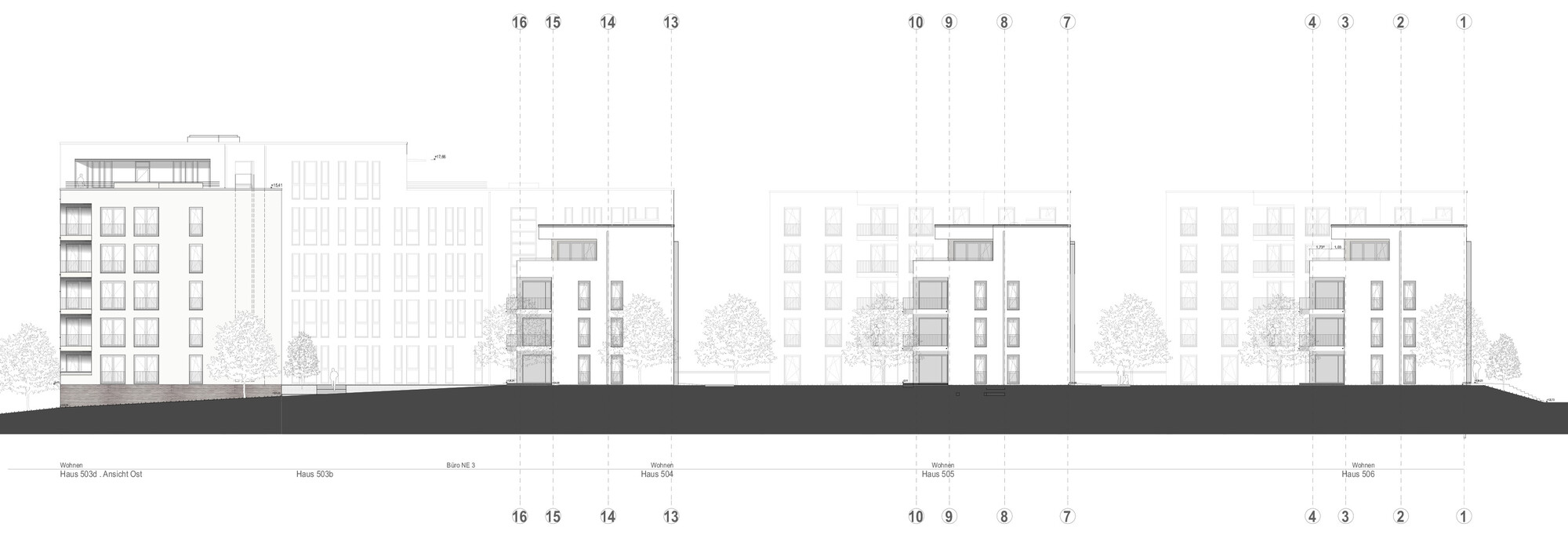 A residential area with 186 flats, a commercial area and two underground parking structures with 478 parking spaces.