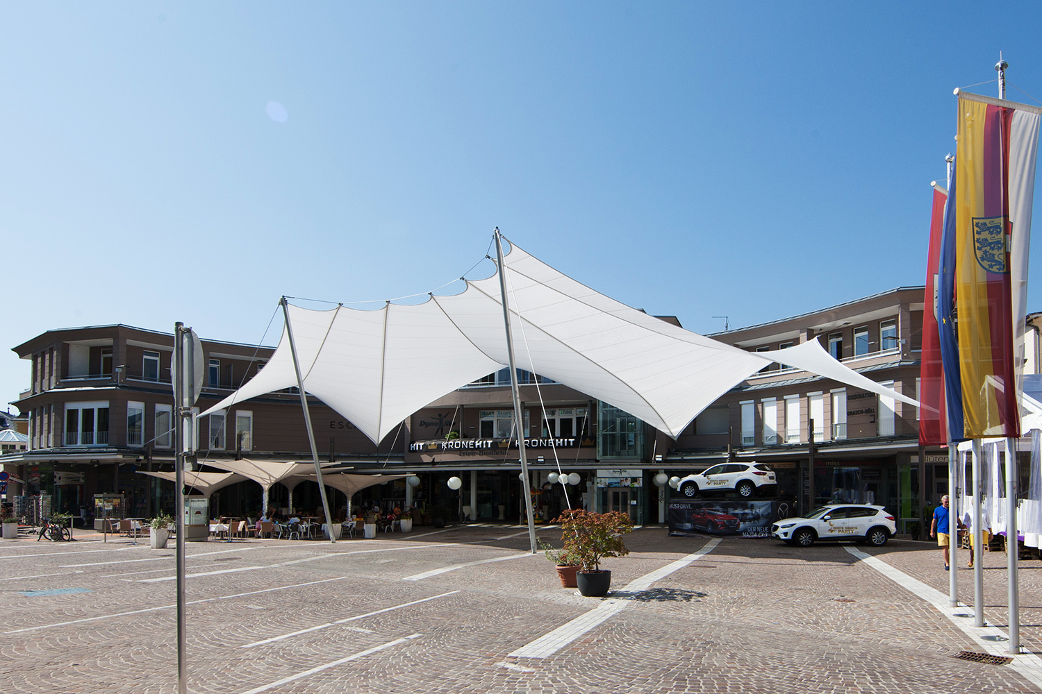 The 450 m² membrane roof can be easily disassembled over the winter, when it is not needed and reassembled for the next season.