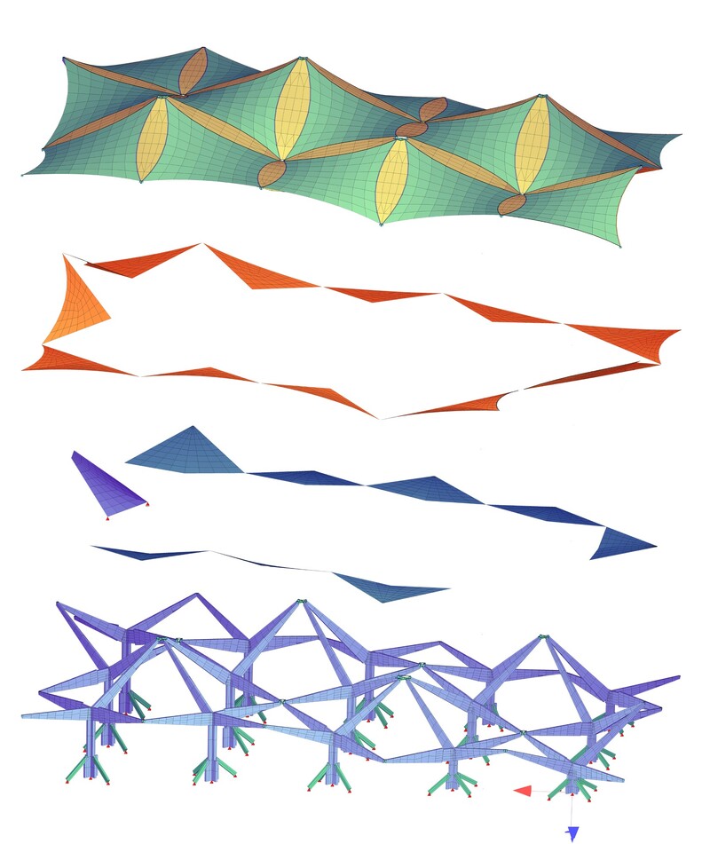 Die Tragkonstruktion des Pavillons besteht aus 15 Baumelementen. Diese Brettschichtholzkonstruktionen sind mit einer Membran aus PTFE überspannt. Die Membran überdacht eine Fläche von 2.500 m². Die maximale Spannweite beträgt 11 Meter.