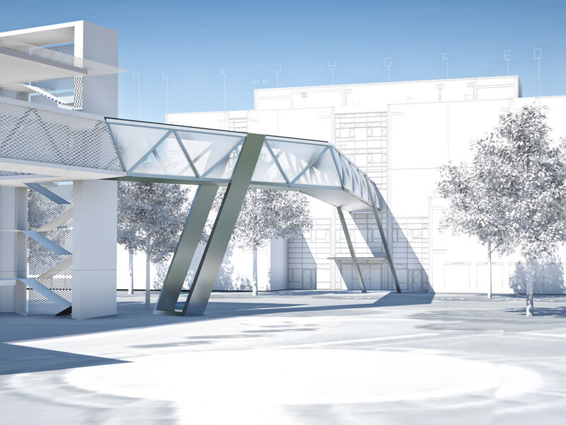 Neubau einer Fußgängerbrücke zur Anbindung der Klinik an ein Heliport.