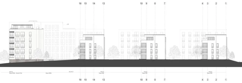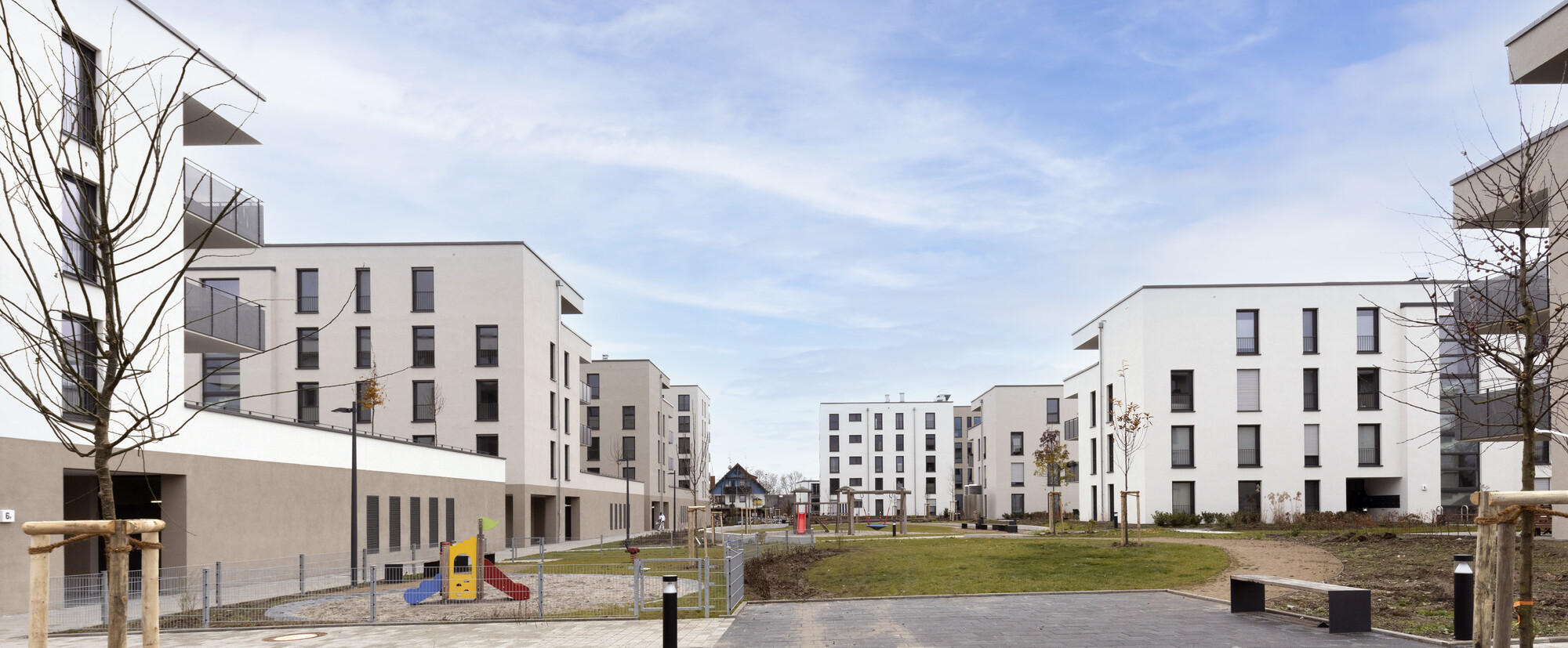 Errichtung eines Wohnquartieres mit 186 Wohnungen und eines Gewerbebereiches sowie zweier Tiefgaragen als Großgaragen mit insgesamt 478 Stellplätzen.